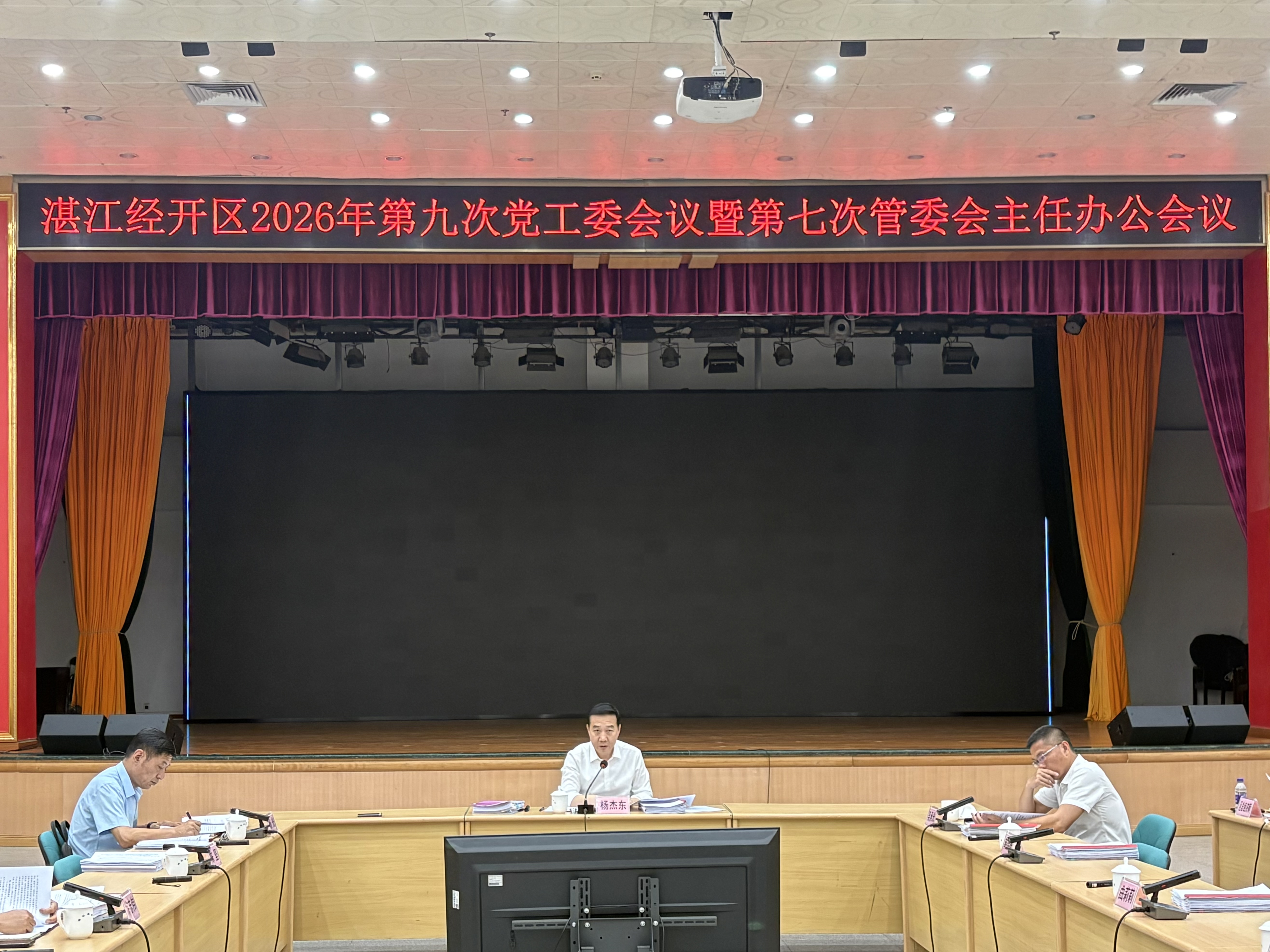 4月17日,湛江经开区召开2026年第九次党工委会议暨第七次管委会主任办公会议,深入传达学习中央、省、市重要会议精神,研究部署湛江经开区贯彻落实意见。区党工委副书记、管委会主任杨杰东主持会议,区党政领导班子成员,区直及驻区各单位、各镇(街)负责人参加会议。