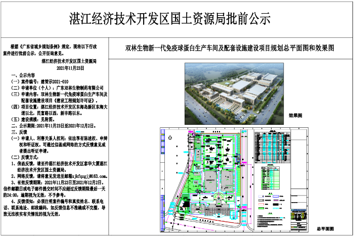 湛江经济技术开发区国土资源局批前公示(双林生物新一代免疫球蛋白生产车间及配套设施建设项目规划总平面图和效果图).pdf