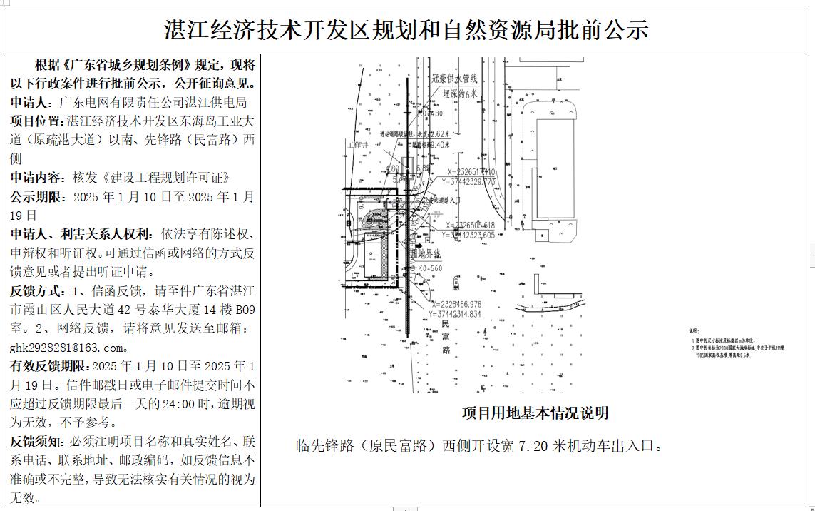 湛江110千伏先锋输变电工程项目开设道路出入口工程《建设工程规划许可证》公示
