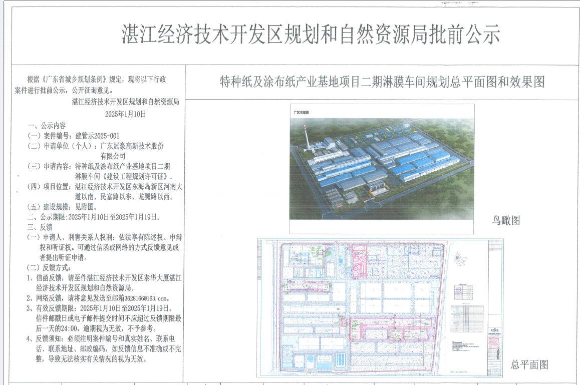 特种纸及涂布纸产业基地项目二期淋膜车间规划总平面图和效果图批前公示